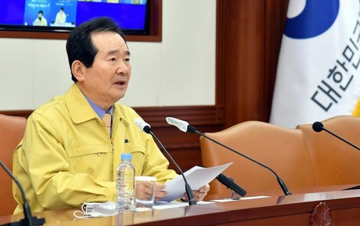 정세균 국무총리는 14일 코로나19 사태와 관련해 “관계부처와 지자체에서는 당장 신규 확진자가 줄었다고 방심하는 일 없이, 철저히 방역에 임해주기 바란다”고 주문했다.▲ 정세균 국무총리가 17일 정부서울청사에서 열린 중앙재난안전대책본부 회의를 주재하고 있다.정 총리는