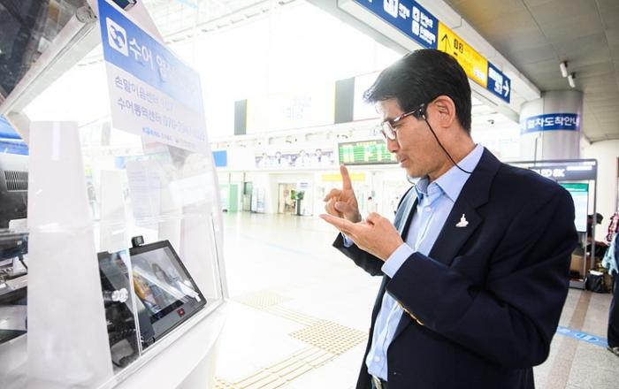 한국철도가 청각장애인의 철도이용이 더욱 편리해진다고 26일 밝혔다.한국철도는 지난 1월부터 5차례에 걸쳐 한국농아인협회와 간담회와 현장실사를 진행해 청각장애인 이용객의 실질적 불편사항을 개선하기 위한 종합대책을 마련했다.▲ 지난 25일 서울역에서 변승일 한국농아인협회장