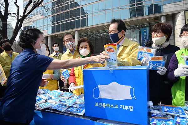 정 총리는 서울시 자원봉사센터장으로부터 마스크 기부나눔 현황을 보고받고 시민들에게 캠페인 동참을 호소하며 직접 홍보에 나서기도 했다.