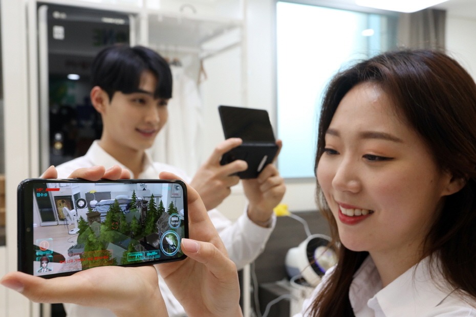 LG유플러스 5G 고객에게 무료로 제공되는 U+AR의 AR게임은 현실 위에 구현되는 게임 그래픽을 360도 원하는 방향에서 어디서나 모바일로 실감나게 즐길 수 있는 것이 장점이다.