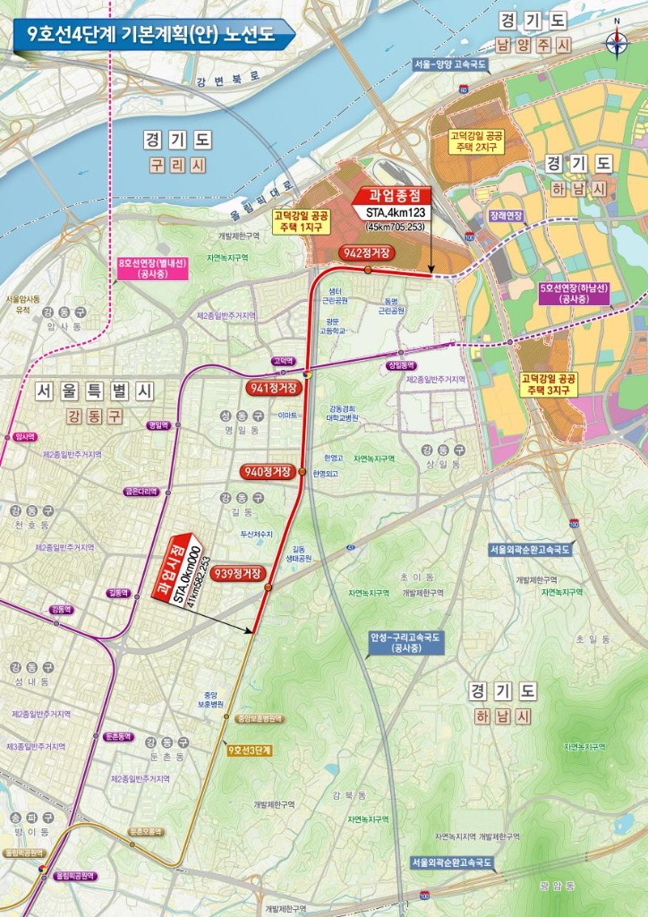 한제현 서울시 도시기반시설본부장은 “주민 숙원 사업인 도시철도 9호선 4단계 연장사업의 기본계획이 승인된 만큼 조속히 후속절차를 이행할 것”이라며, “강동 지역에서 강남·여의도 방향 접근성이 향상되고, 대중교통 불편해소 및 지역 간 균형발전에 크게 기여할 것으로 기대된다.”고 말했다.