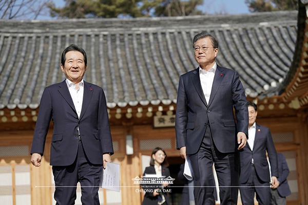 문 대통령과 정 총리는 회동에서 코로나19 방역상황도 종합적으로 점검하고 생활 속 거리두기 준비와 등교 개학 대비 등에 대해서도 논의했다.