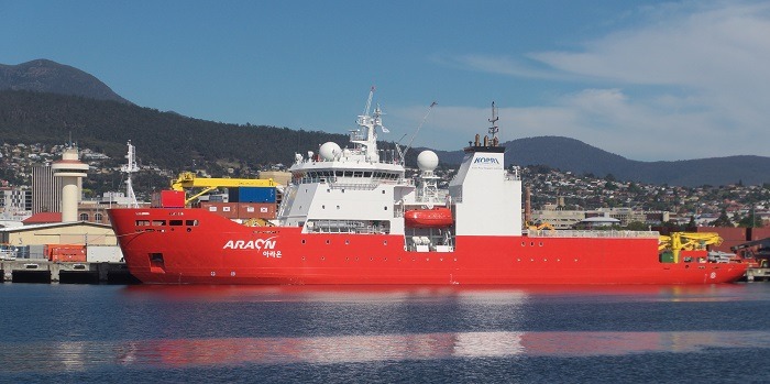 남극에서 아라온호는 가장 빠르게 녹고 있는 서남극 스웨이트 빙하에 접근하여 관측망을 설치하고, 과거 빙하의 움직임 복원과 빙붕*의 소멸 연구를 위한 퇴적물과 바닷물을 채집하였다.