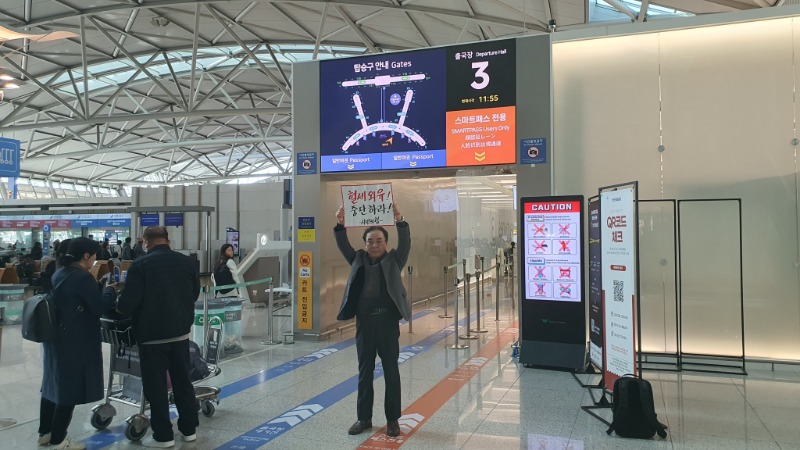 어차피 보여주기 식이면 아무도 없을 때 김포시 시의회에서 손 팻말을 들거나 또는 김병수 시장실 앞에서 손 팻말을 들고 사진을 찍으면 되는 것이지 인천공항까지 가서 손 팻말을 들고 사진찍을 필요는 없다.