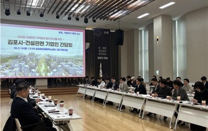 김포시가 대규모 공동주택 건설사업에 지역 업체의 참여를 확대하고 지역 건설산업의 활로를 모색하기 위해 '김포시-건설관련 기업인 간담회'를 개최했다. 지난 16일 김포제조융합혁신센터에서 열린 이번 간담회에는 김병수 김포시장을 비롯해 시 관계자, 건설사 현장 소장 및 외주