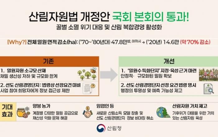 국회 본회의에서 ‘산림자원의 조성 및 관리에 관한 법률’과 ‘수목원·정원의 조성 및 진흥에 관한 법률’ 개정안이 의결됐다. 이번 법안 통과로 기후위기 대응을 위한 산림자원 활용과 수목원의 공공적 기능 강화를 위한 제도적 기반이 한층 견고해질 전망이다.▲ 밀원수 특화단지