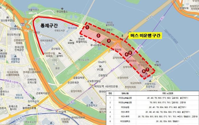 2020여의도 봄꽃축제 취소에도 불구하고 방문객이 집중됨에 따라 서울시는 고강도 ‘사회적 거리두기’ 차원에서 통제구간 인근 버스 임시우회 운행을 이번 주말에도 한번 더 추진한다.주말기간(4.11~4.12) 여의도 윤중로 인근 버스 정류소 7개소를 폐쇄하고, 해당 정류