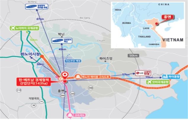 한-베트남 경제협력 산업단지는 LH가 실시하는 베트남 최초의 한국형 산업단지로, 하노이 남동측으로 36km 떨어진 흥옌성 지역에 1,431천㎡(43만평) 규모로 조성될 예정이다.