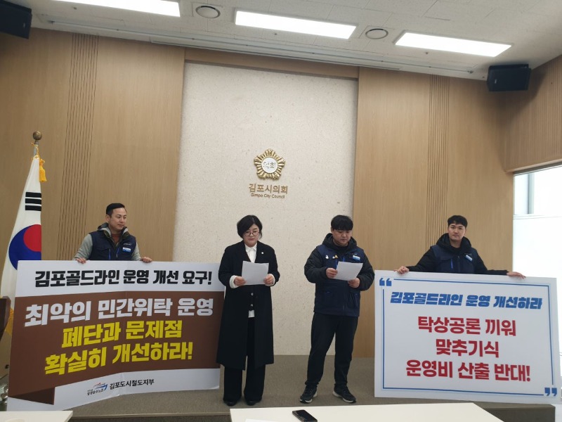 더불어민주당의 김계순 의원과 김포도시철도지부 지부장 박찬연(민주노총 공공운수노조, 이하 박찬연 지부장이라고 칭함)이 김포도시철도의 문제점에 대해 공동으로 2026.02.26. 오전 09:30에 김포시 의회 브리핑룸에서 기자회견을 했다.