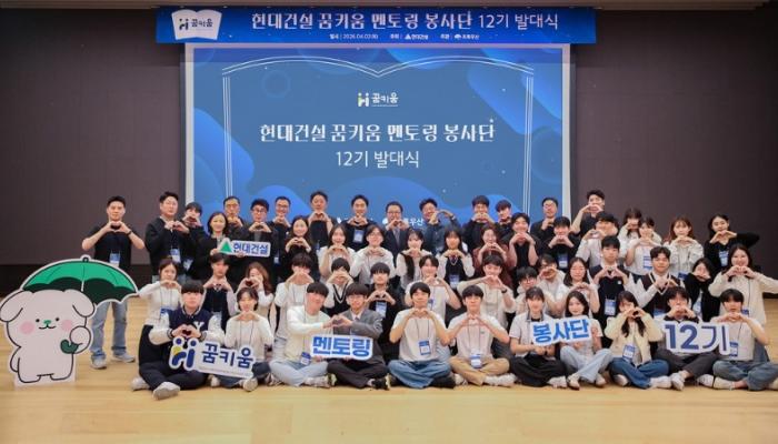 현대건설이 성장 세대의 교육 기회 확대와 건설 분야 미래 인재 육성을 위해 사회공헌 활동을 지속한다. 현대건설은 서울 종로구 계동 본사에서 사회복지법인 초록우산 어린이재단과 함께 ‘꿈키움 멘토링 봉사단’ 12기 발대식을 개최했다.이날 행사에는 현대건설 이형석 재경본부장과 초록우산 어린이재단 여승수 사무총장을 비롯해 임직원...