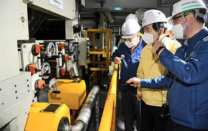 정세균 국무총리는 3일 마스크 원자재 생산업체를 직접 점검하고 “정부는 가용한 모든 수단을 동원해 마스크 공급을 늘려 국민 불편을 최소화하겠다”고 밝혔다.정 총리는 이날 오후 마스크 원자재인 MB(멜트블로운)필터를 생산하는 경북 구미의 도레이첨단소재를 방문해 생산·출하